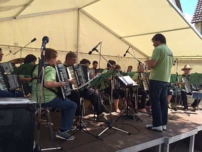 Einige Akkordeonpieler des 1. Orchesters waren kurzfristig eingesprungen, nachdem der ursprünglich geplante Auftritt eines anderen Vereines nicht stattfinden konnte.