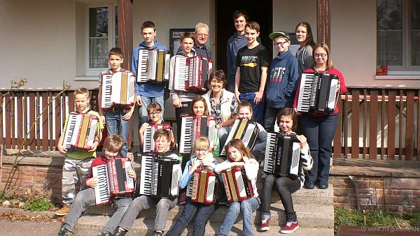 Ein besonderes Erlebnis war mit „Präludium und Fuge in g-Moll“ von Johann Sebastian Bach und „Präludium und Fuge in a-Moll“ von Mátyás Seiber auch der Auftritt des Jugendorchesters unter der Leitung von Eugen Sokolkov. Die jungen Musiker spielten mit Ernsthaftigkeit und Präzision die anspruchsvollen Stücke ihres Wertungsprogrammes, mit dem sie am 24. Mai beim 2. Deutschen Akkordeon Jugendorchester-Wettbewerb in Pfungstadt teilnehmen.